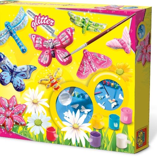 Bu eğlenceli ve kolay kullanmlı sette, önce güvenli ve hızlı kuruyan alçı karışımı su ile karıştırılıp kalıba dökülecek ve kurumaya bırakılacak. Kolayca kendi kelebek koleksiyonunuzu yapabilirsiniz. Harika kelebekler kuruduktan sonra paket içerisinden çıkan 6 parlak renk boya ve fırçayla boyanacak ve simlerle süslenecek. Boya ve alçılar ciltten veya tekstilden yıkanarak kolayca çıkabilmektedir. Yaratıcılığı, konsantrasyonu ve ince motor becerilerini geliştirmek için harika bir ürün. Ses Creative 40 yıldan uzun bir süredir güvenli ve yaratıcı oyuncaklar geliştirmektedir. Bu ürün Hollanda'da üretilmiştir.