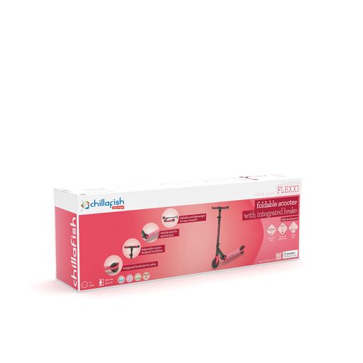 Flexxi, Chillafish scooter ailesinin 2 tekerlekli, kompakt, hafif, katlanır yeni scooter serisi! Hafif alüminyum alaşım bu scooter entegre kolay katlama sistemiyle, PU yüksek kaliteli tekerlekleriyle, güvenlik ve iyi kavrama için Chillafish imzalı Twintip güçlü plastik hafif kavisli ayak tablasıyla ve entegre ayak freniyle harika bir scooter. 3 kademeli ayarlı direksiyonu ile 5 yaş ve 100 cm üzeri, 50 kg altı çocuklar için uygundur. Çocukların motor, denge, koordinasyon ve sürüş becerilerini geliştirir.