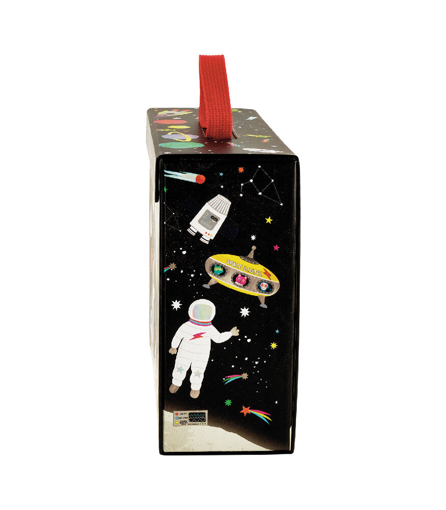 Hangi ufaklık 15 parlak çift taraflı ahşap figür içeren Floss & Rock Oyun Kutusu istemez ki? Space Oyun Kutusunun içindeki astronotlar, roketler, uzaylılar, uçan daireler ve mıknatıslarla birleştirilebilen tekerlekli iki harika figürle Uzay sahnesinde çocuklar istedikleri oyunu kurabilecekler. Floss & Rock Oyun Kutusu açılarak ayın yüzeyi ve uzay istasyonuna giden kapı ortaya çıkmaktadır. Birbirinden parlak çift taraflı ahşap figürü kullanarak aya inebilir veya uzay istasyonunun pencereleri sayesinde çeşitli oyunlar oynayabilirsiniz. Floss & Rock oyun kutunuzu gitmek istediğiniz her yere götürebilmeniz için taşıma kolu vardır. Oyununuzu evde veya dışarıda, yalnız veya arkadaşlarınızla oynayabilirsiniz.