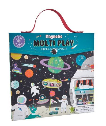 Karalama kartı, boyama, yapboz ve oyun! Floss & Rock Mıknatıslı Oyun Setimiz küçüklerimizi saatlerce eğlendirmek için 4 farklı aktivite içerir. Floss & Rock çoklu oyun setimiz; her biri 20 parçalı yapboz, 4 renkte silinebilir kalem ve silgisi, pop-out oyun parçaları, bir karalama ve bir boyama kartından oluşmaktadır. Ayrıca Floss & Rock çoklu oyun setinin tüm parçaları mıknatıslıdır, bu sayede istediğiniz yerde oyunları oynarken parçalarını kaybetmezsiniz. Oyunları oynarken açılarak düz formda kullanırken kutuyu katlayarak kapattığınızda her şeyin içine sığabildiği dekoratif bir kutu ortaya çıkmaktadır. Tekrar tekrar kullanabileceğiniz kutusunun taşıma kolonu sayesinde oyunu seyahatte, piknikte veya gezerken yanınıza alabilirsiniz.