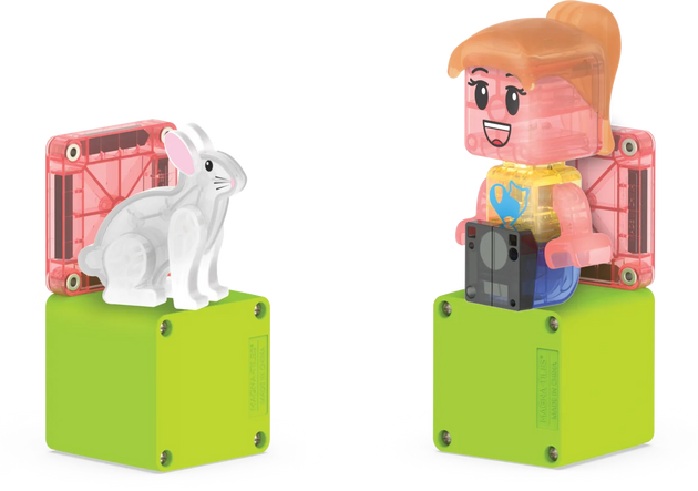 Mix&Match hayvan bakıcısı, çocukların evcil hayvanlara bakmasına yardımcı olmak için orada ve microMAGS küpleri, evcil hayvanlarınızın keşfetmesi için küçük mobilyalar inşa etmenize veya minik yapılar yerleştirmenize olanak tanır.