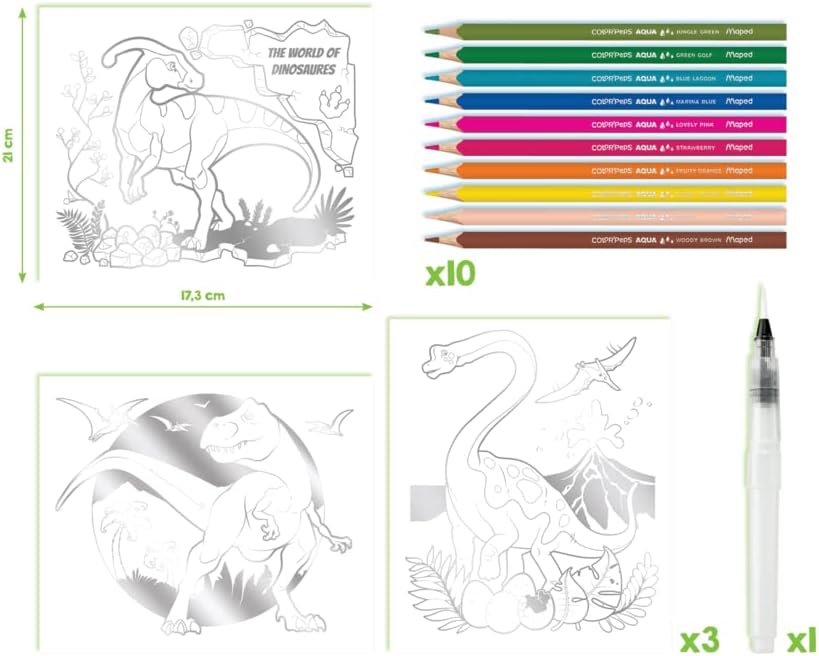 Suluboya tekniği çocuklara uygun hale geliyor! Su haznesi fırçasıyla kolay boyama + su uygulamasında ustalaşın.Her sette üç resim, 10 boya kalemi ve tabii ki su haznesi fırçası yer alacak.