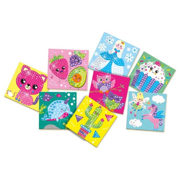 İçinden çıkan 8 adet kart üzerindeki boşluklara 6 renkten toplam 1080 adet renkli boncuğu doğru renklerde yapıştırarak harika kartlar elde edilecek.