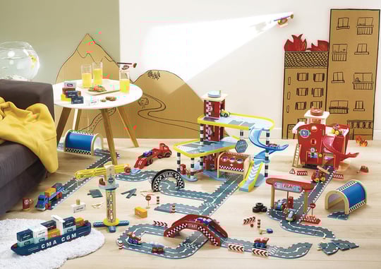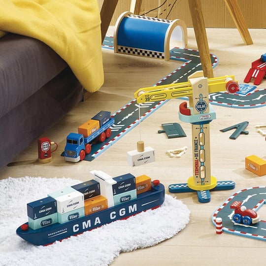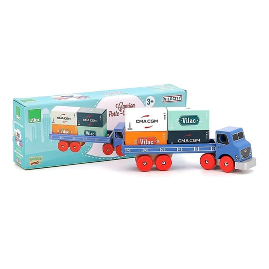 Vilacity dünyasına hoş geldiniz! Dinamik ve eğlenceli renklere sahip konteyner kamyonumuzu keşfedin! 4 adet ahşap konteyneri kamyon kasasına yükleyip boşaltmanın keyfini çıkarın! Konteynerler manyetiktir ve Vilacity vinçleriyle eşleştirilebilir.